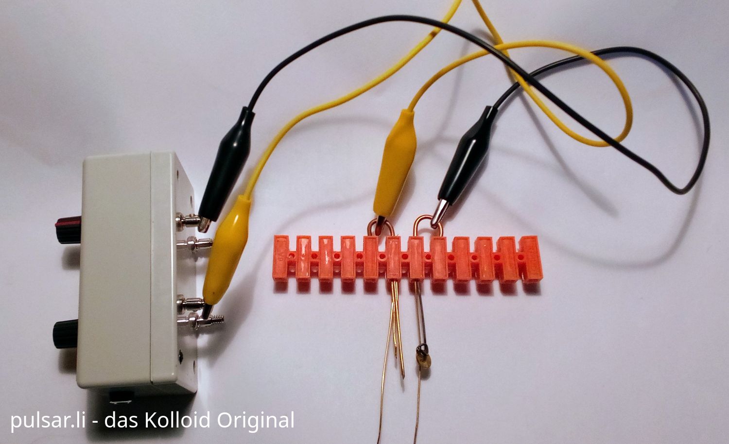Damit kann man einfach kolloidales Gold oder Germanium elektrolytisch selber herstellen.