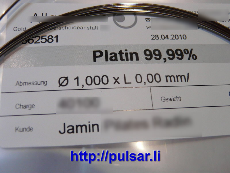 Solche hochreinen Platinelektroden sind kaum mehr zu finden. Die gängigen Elektroden weisen eine Reinheit von 99,95% auf, was für Elektrolyse auch gut genug ist. Aber 99,99% ist exclusiv rein.